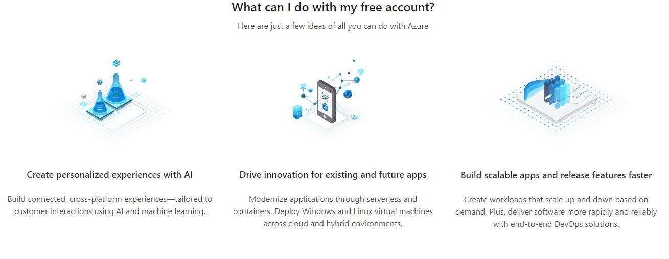 You also get $200 credit to explore Azure. However, this credit expires after 30 days.